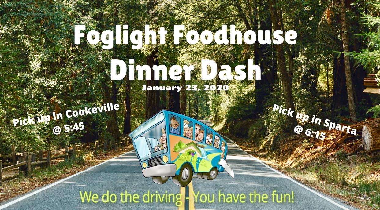 Come join us for Dinner Dash at Foglight Foodhouse! This is such a great place to eat and enjoy the beautiful scenery of Rock Island State Park. It’s a little off the beaten path, so we’ve hooked up with Tour the Upper Cumberland and they will give you a ride to the restaurant and back. You just sit back and have some fun with family and friends. You can get your tickets at: http://www.tourtheuc.com and check out all the details and menu options at: http://www.foglight-foodhouse.com/