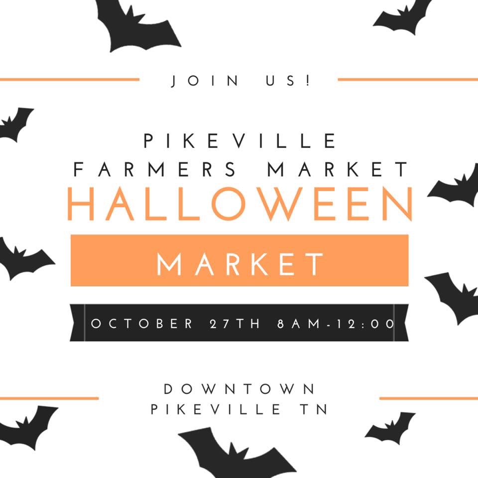 Bring the kids and come on out! A great family fun day is to be had at the Halloween Farmer’s Market in Pikeville, TN. Bring the little ones all dressed up for a fun day of trick or treating and buying goodies. There will lots of vendors and lots of candy! So come on down from 8:00 AM to 12:00 in downtown Pikeville, TN and trick and treat! Hope to see ya there!