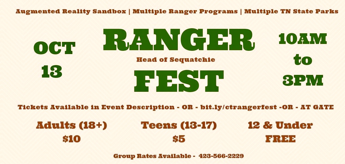 Ranger Fest is where park meets festival! Bring the family and friends and come on out for an awesome day of fun and creativity. From Creek Critters (a water-wading program) to Backpacking Basics, the kids and adults will have a great day! Learn all about bat and bat boxes and definitely sign up for a walk among the trees. The day is packed full of interesting activities. So if you are staying in one of our beautiful cabins or just in the area, grab the family or friends and take a short ride over to Pikeville, TN and have some FUN! For all information about tickets: http://www.tnstateparks.com. Hope to see ya there!