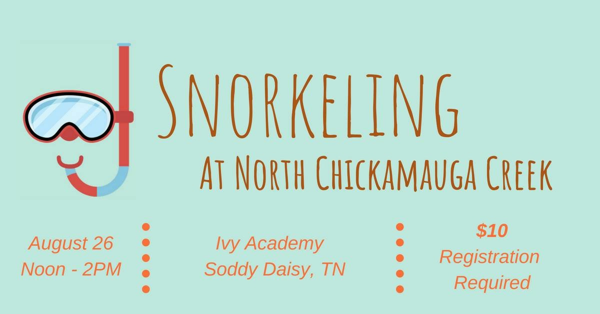 Snorkeling in the North Chickamauga Creek is going to be a great adventure! Come on out and enjoy a day of fun and sightseeing for fish! Explore to diversity of fish and vegitation that are unique to our area. You must register before attending this event and have verification of snorkel rental. Please register at: https://tnstateparks.com. So come of out and enjoy some water time with your friends and family. Hope to see ya there!