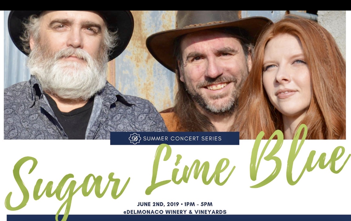 Summer is here and this is how DelMonaco Winery kicks it off!  The summer concert series starts off with bang!  Sugar Lime Blue is a top rated touring Americana band that will definitely please all the music lovers!  From Jazz, Blues and Country, this band has a unique and pure sound with a twist.  Come on out cause your gonna to love it!  Check out their music at:  http://www.sugarlimeblue.com to listen ahead of time.  Be sure to bring that lawn chair and a bunch of friends and come on out for great music!  Check out all the details on:  http://www.facebook.com.